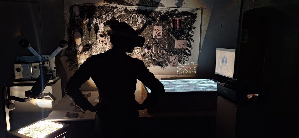 Salzburg International Summer Academy of Fine Arts 2025 / Installation part of my workshop “Media Translations: From analogue film to immersive narratives” / Instalacion colectiva con mi clase de “Media Translations: From analogue film to immersive narratives” /