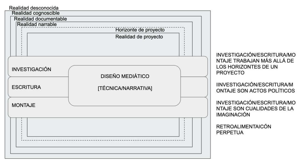 “Escribir es un acto de ocupación del mundo. Hacer visible el aliento, dar cuerpo a la voz, intervenir el curso del relato histórico. Escribir es hendir el tiempo al introducir nuestra mirada en el horizonte común —es reconocimiento de uno mismo y de la otredad—. Escribir no solo es usar el lenguaje escrito: escribir es tejer sentido con todas las herramientas que la sensibilidad e inteligencia humana tienen al alcance. En el proceso de la investigación artística la escritura deviene inevitable. ….
